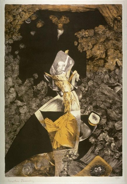 In 1936 she had gone to the Museum of Modern Art's massive exhibition, Fantastic Art, Dada and Surrealism and there seen works of Brauner, Dominguez, Ernst, Tanguy, Dali and many of the more minor figures. This inspired her to adopt a surrealist style. In 1942 she painted Birthday. That year gallery owner Julien Levy introduced her to Max Ernst who came to her studio and was profounded impressed by this painting. After his initial visit, Dorothea and Ernst played chess every day for a week. Then he moved in and after Ernst had divorced Peggy Guggenheim they married and relocated to Arizona before finally moving to France.