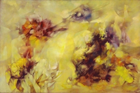 She continued to pour out major pieces often shifting styles with such as the 1945 Truth about comets, Avatar of 1947 with a young woman with long hair flying on a trapeze in the upper part of her bedroom, which is shown in false perspective and of course, Max in a Blue Boat of the same year, with his signature loplop bird figure on the white sail. The enigmatic On time Off Time is yet again is a different style.