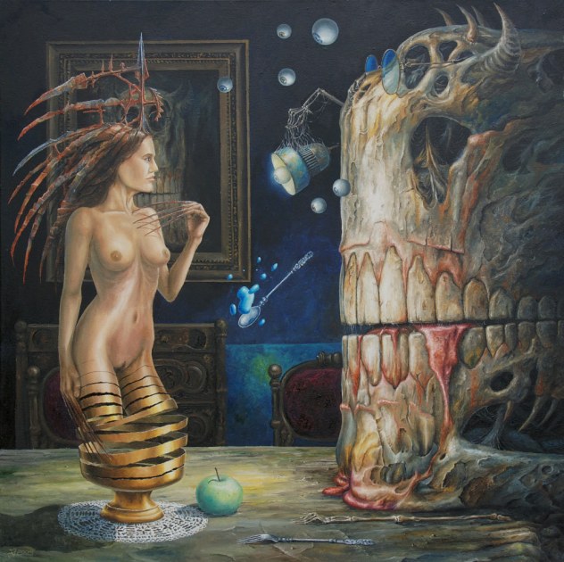 Jaroslaw Jasnikowski was born in Legnica in Poland. He started painting in 1991 under the guidance of Miroslawy Lickiewicz, a Legnica artist and educator. At that time, the main inspiration for Jasnikowski was the art which illustrated Science-Fiction. In the mid 90s he discovered the work of Salvador Dali and other surrealists, and in 1998, having attended an exhibition of Wojciech Siudmak in Legnica and meeting with the artist himself, he decided to devote himself to working in surrealism or fantastic realism. He took a degree in painting in 2001 at the School of Fine Arts in Glogów, under the direction of painter and poet Telemachus Pilitsidisa.