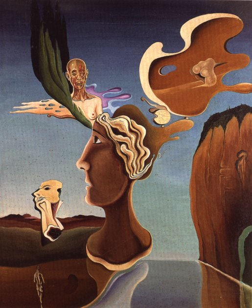By 1930 his surrealist painting style matured. His pre-war work is poetic, mystical and full of symbolism. Often his works of that time have severed members, heads, hands and feet that appear in surreal situations.