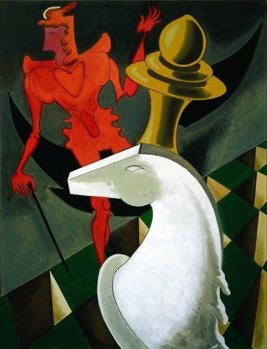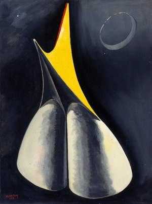 After the war he retuned to Paris and in the late 1940s he created a series of paintings The Shakespearean Equations which were based on some sculptural models he had found in a mathematical institute of complex equations of surfaces in three dimensional space. He created paintings incorporating these shapes and associated each with a play of Shakespeare.