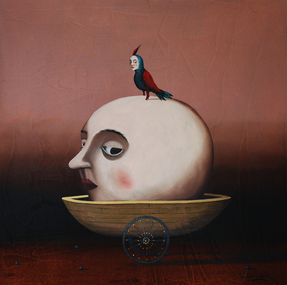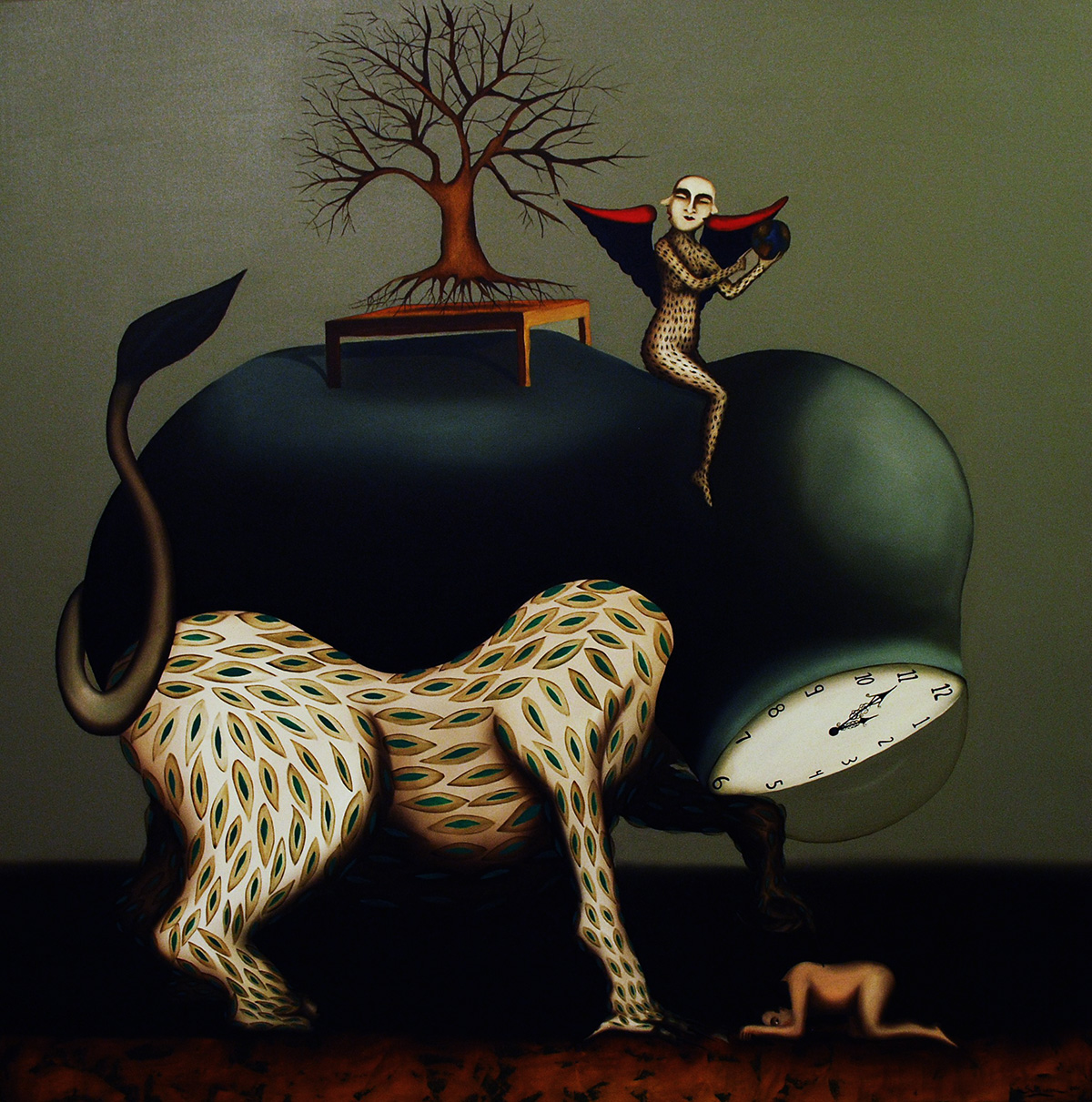 His influences come mainly from Bruegel, Bosch, Carrington, Dali, Kahlo, Remedios Varo and he borrows elements from the pictorial language of Bridget Tichenor.