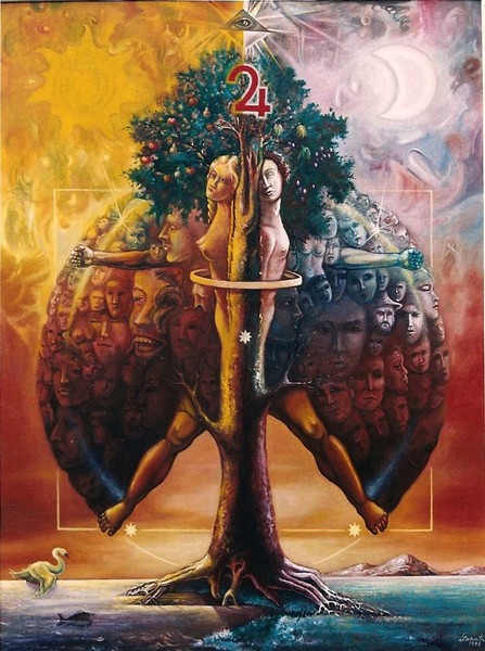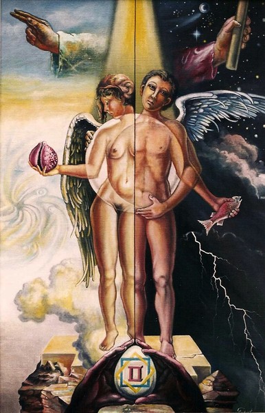 He paints in egg tempera, acrylics and oils, producing portraits, icons, linear expressionism and surrealistic symbolism. There appears to be a strong religous theme in some of his paintings.