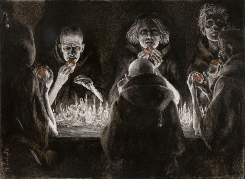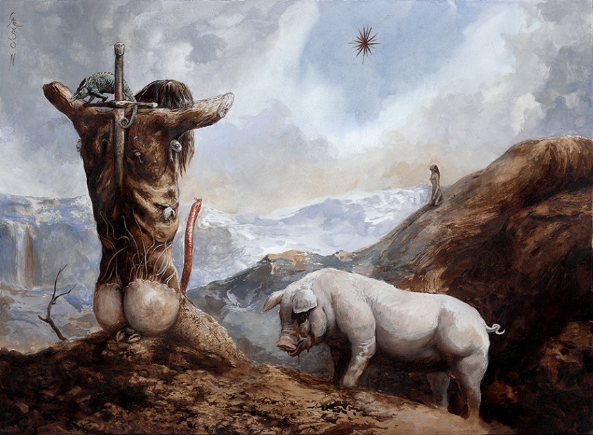 "I try to summon a poetic phantom that supplies a wider vision of the human, contemplating the beautiful, the frightening, the repressed or forgotten in the shadows, the impossible. With this concept of depiction, I try to utilize Gothic symbolism as a crystallized view of the world in many respects. I combine religion, politics, and commonplace things to reveal another vision of the world with regard to the unconscious, the damned ghosts we’ve buried, and many other aspects of history and philosophy."