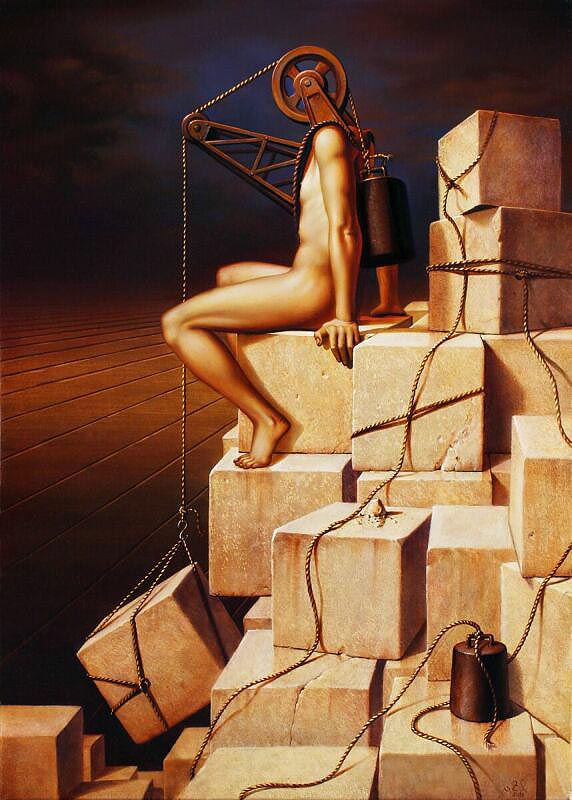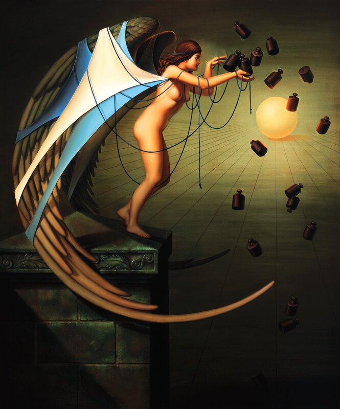 His work is characterized by borrowing from the works and painting style of important painters in European art history, above all he is based on the masters of the Italian Early and High Renaissance up to those of Mannerism. He himself calls his style 'fantastic-surreal'.