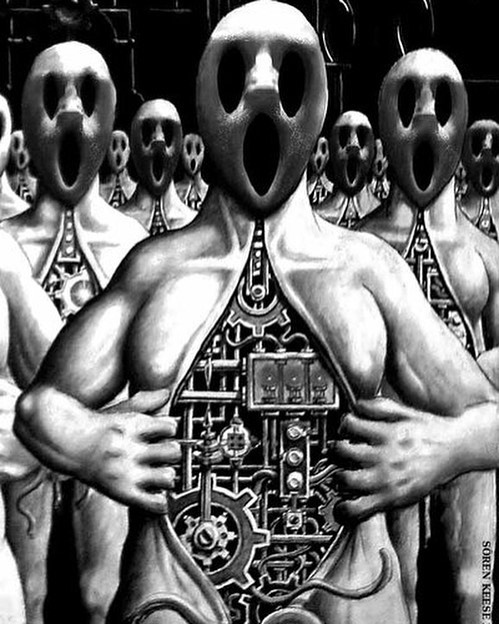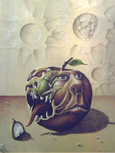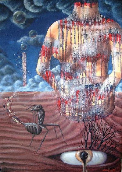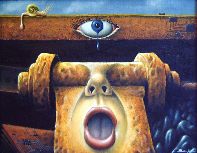 He writes "Surrealism is a companion that is always at my side and gives my concerns the most precise expression. Using organic and mechanical elements, I combine the provocative and the mystical in surreal worlds in order to awaken the viewer a little from the sleep of a second-hand world numbed with trivialities."