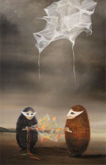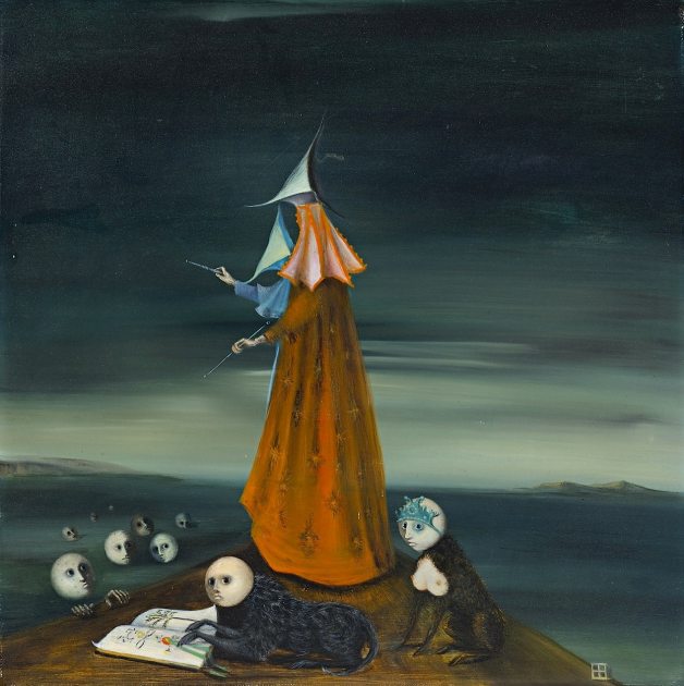 She developed her own symbolic language and peopled her paintings with various strange beings often enclosed in egg forms.