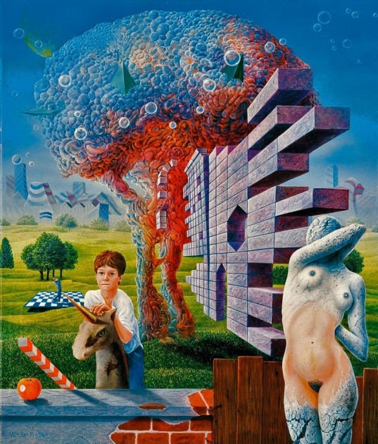 "It was his special concern to place the human being into his paintings, but in a critical manner and to hold a mirror up to people showing them their beautiful facade, but also what lies behind it. His images are thus often very appealing at first glance but then the content encourages the viewer to think more deeply.