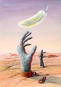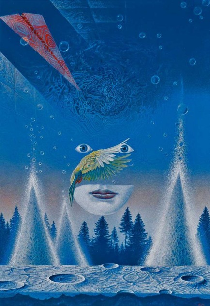 His paintings often have an underlying narrative, in which, emerging from the centre of man, fear, uncertainty, loneliness, inadequacy, death and eternity, love and happiness are woven together in a very unique way to create new images."
